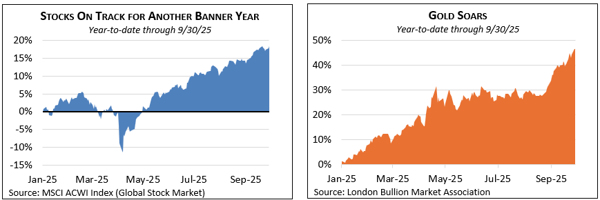 Stock markets are telling a story of optimism, while gold’s message is one of caution. Both can be valid. For a more detailed discussion, be sure to see our quarterly Economic and Market Review that accompanies your quarterly report.