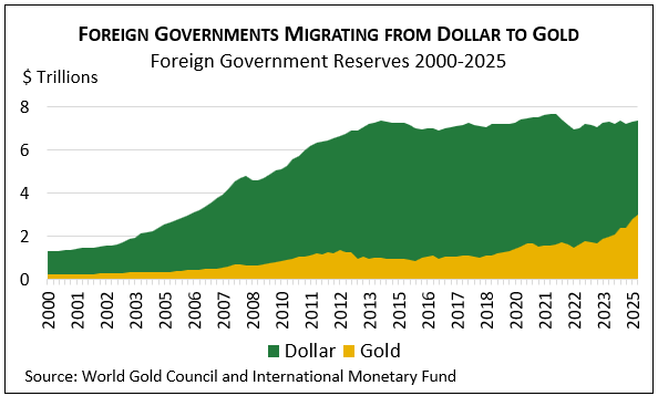 It starts with the historical dominance of the US dollar in the global financial system. For the better part of a century, the dollar has served as the world’s primary reserve currency. Combine this with the substantial policy shifts emanating from Washington since President Trump’s inauguration a year ago and you get big asset price moves. As examples, consider the US decision to impose sweeping worldwide tariffs. Or the conscious weakening of transatlantic alliances, coupled with assertions of US dominance in the Americas. Both policy changes have motivated many foreign governments to diversify their reserves away from the dollar in favor of gold, contributing to a weaker dollar, higher gold prices, and strong foreign stock markets.