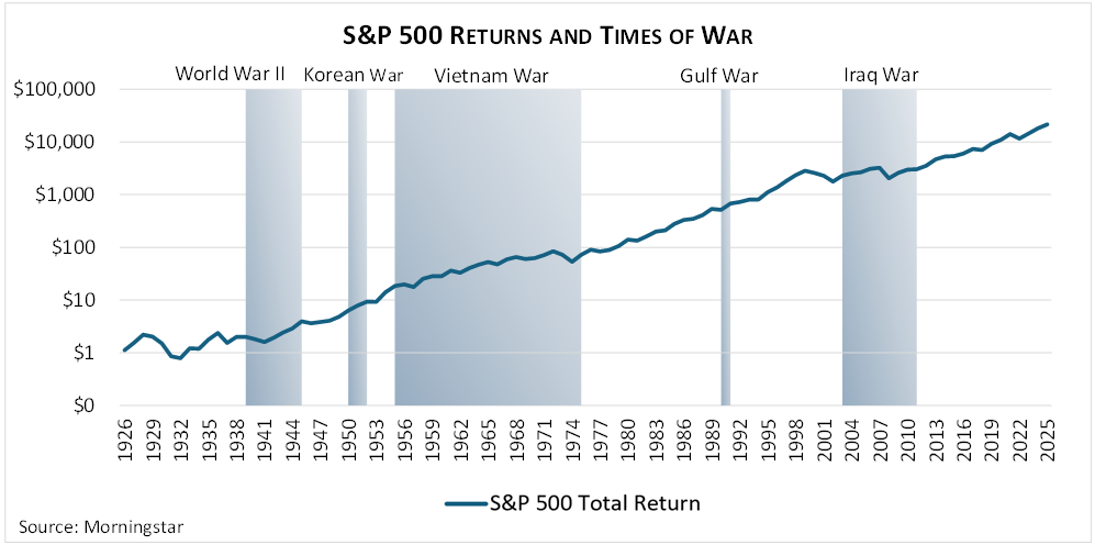 When it feels like the world is spinning so fast that it might come off its axis, we counsel patience and perspective. All wars eventually end, some quickly and some not, some in a lasting resolution and others in stalemate. This conflict is no exception. Short attention spans, as well as political and economic pressures, favor a quicker end, but the jury is still out. The end, when it comes, might be messy and inconclusive. Even a quick resolution will leave world commerce bruised for some period, but history suggests that economies have a natural tendency towards repair, recovery, and resumed growth.